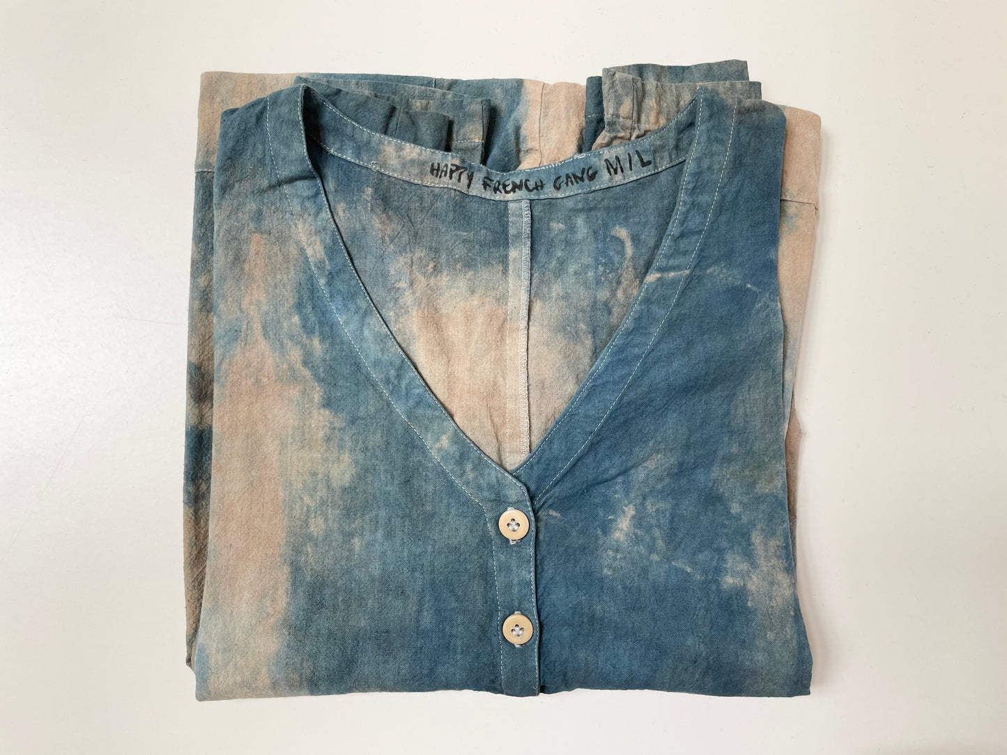 Jennifer Parry Dodge is a textile artist based in Los Angeles. I follow her incredible work since almost a decade. Happy French Gang started 8 years ago with tie-dye pieces only, that is why it was natural to reach out to Jennifer to add some colors onto those pieces! Some pieces are made with natural dye only and some with synthetic dye as well.