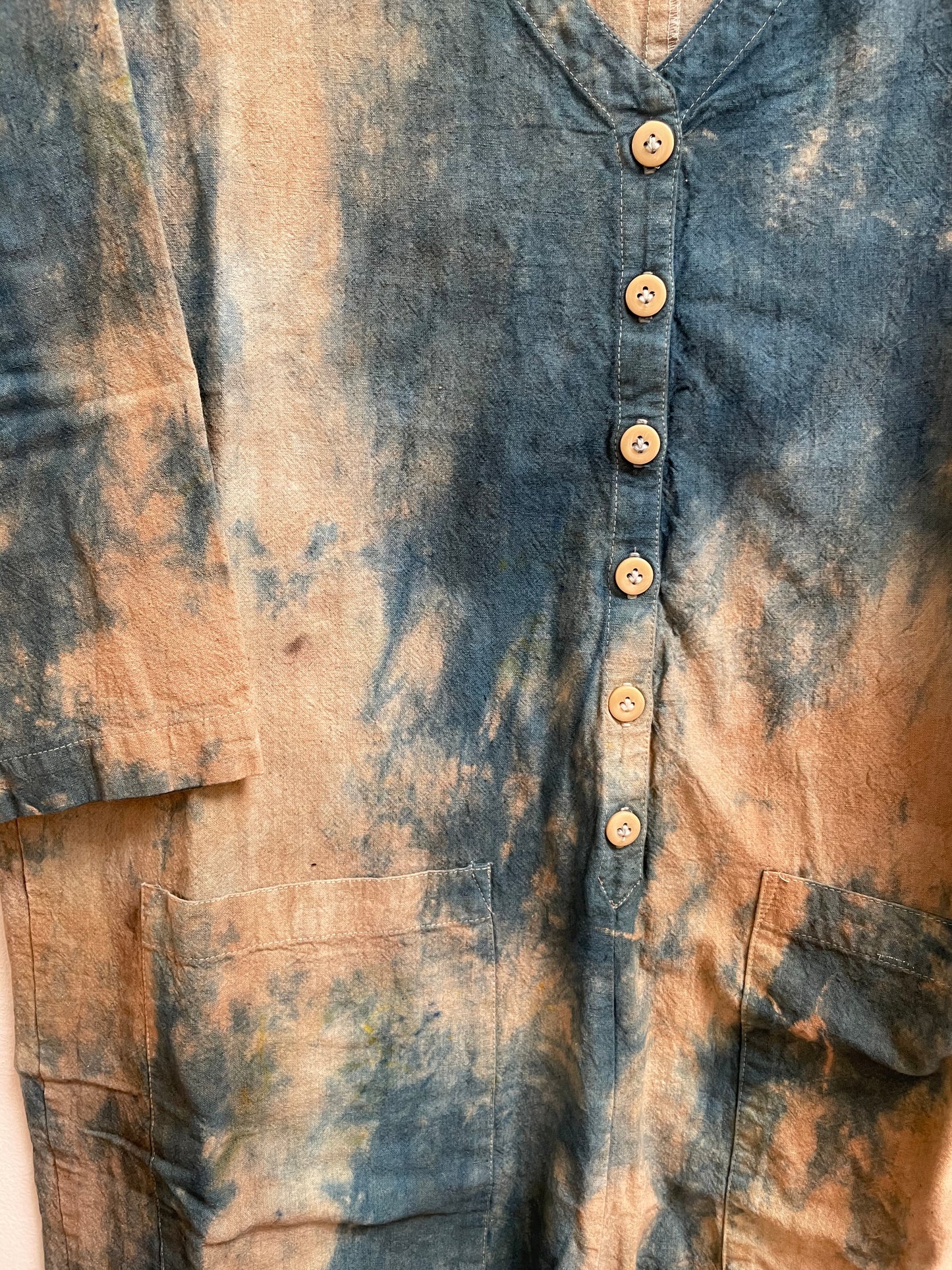 One of a kind. Made from homespun, handwoven 100% cotton. Natural dye. Light weight fabric.