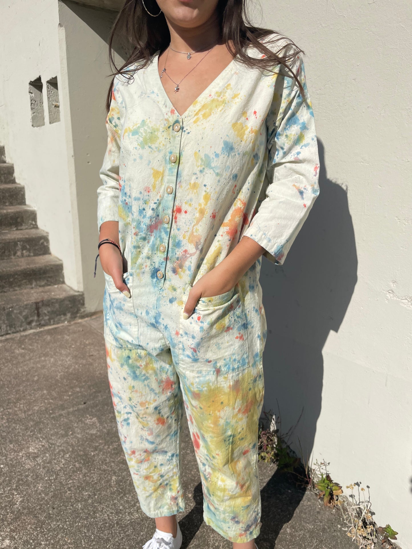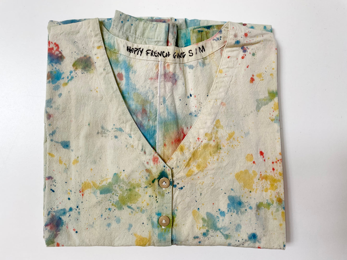 This tie-dye collection has been created with the only goal to reduce our waste at Happy French Gang. We sometimes have plain color pieces that have small color imperfection. We love them but it’s hard to sell them without seeing in person. That is why I decided to transform them completely and make the most colorful and happy pieces.