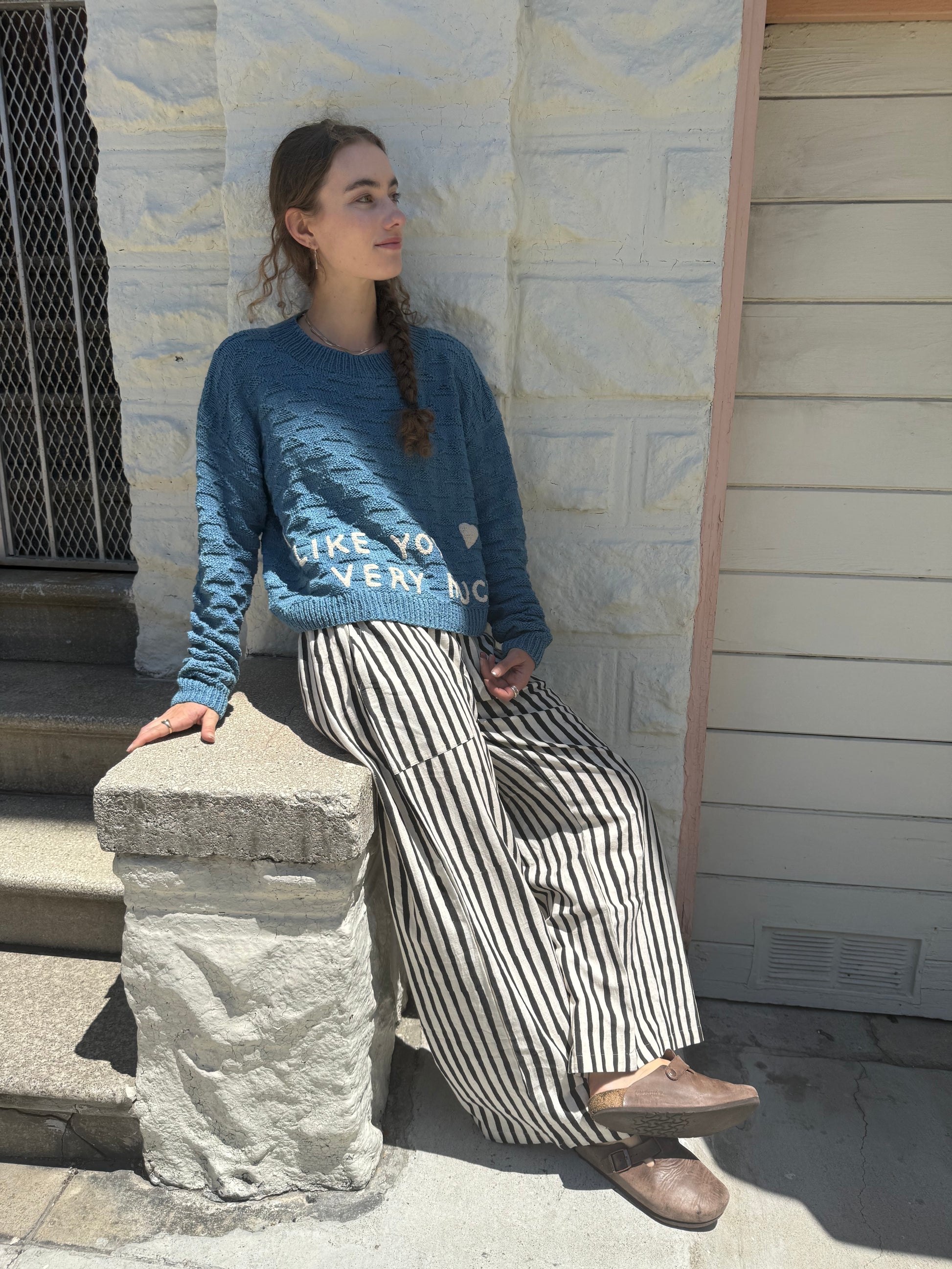 I Like You Very Much Sweater, Hand Knit & Natural Dyes & Crochet Appliqué