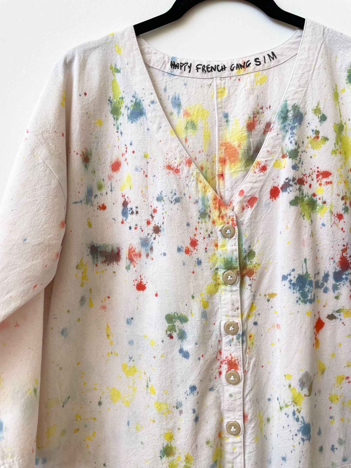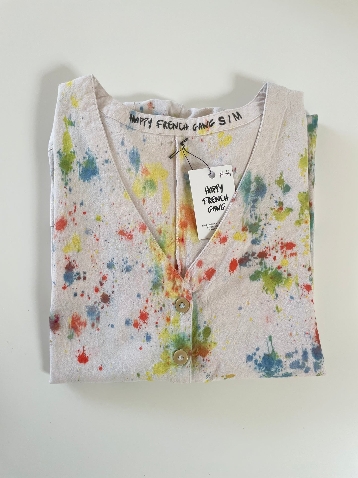 This tie-dye collection has been created with the only goal to reduce our waste at Happy French Gang. We sometimes have plain color pieces that have small color imperfection. We love them but it’s hard to sell them without seeing in person. That is why I decided to transform them completely and make the most colorful and happy pieces.