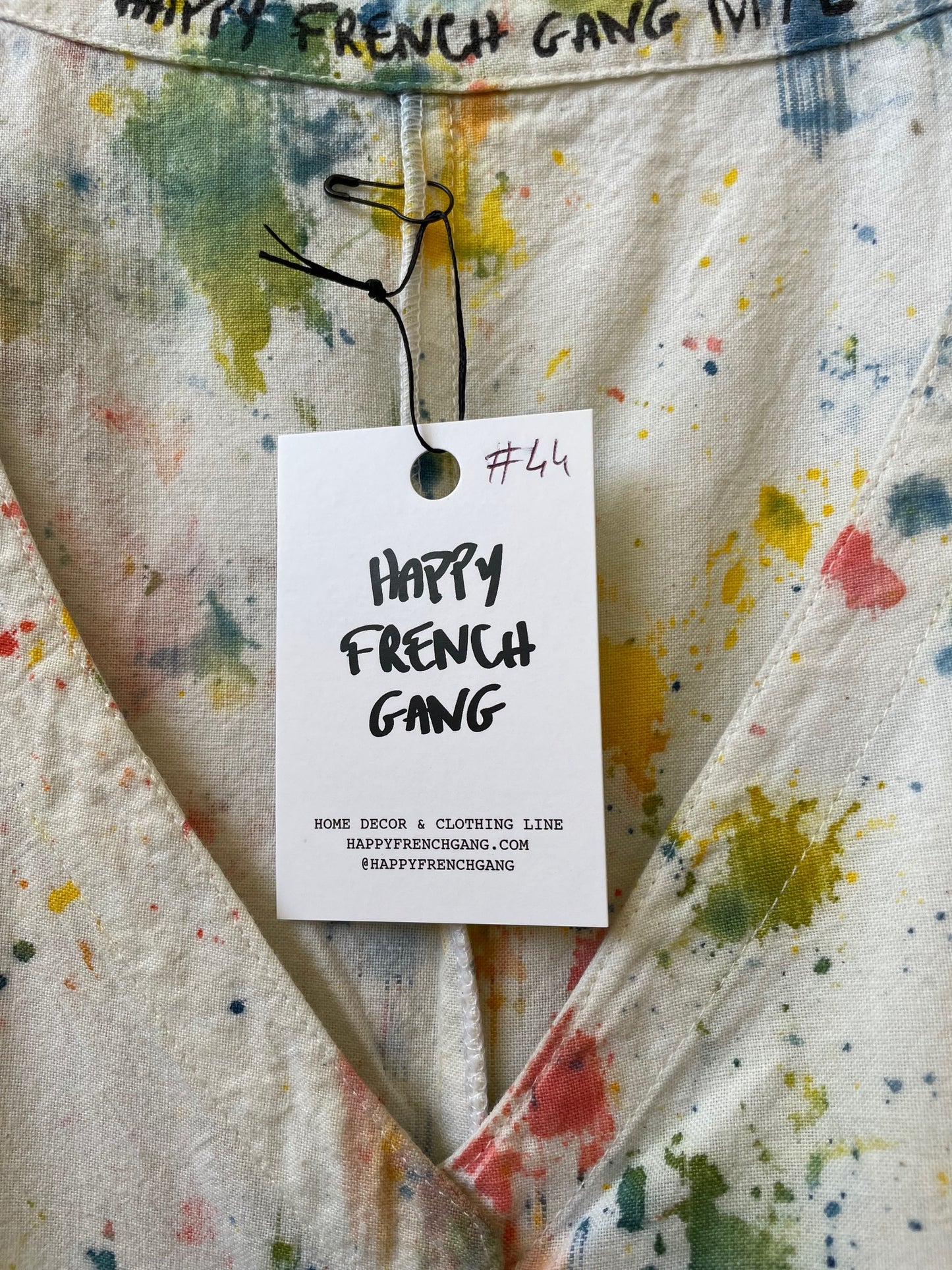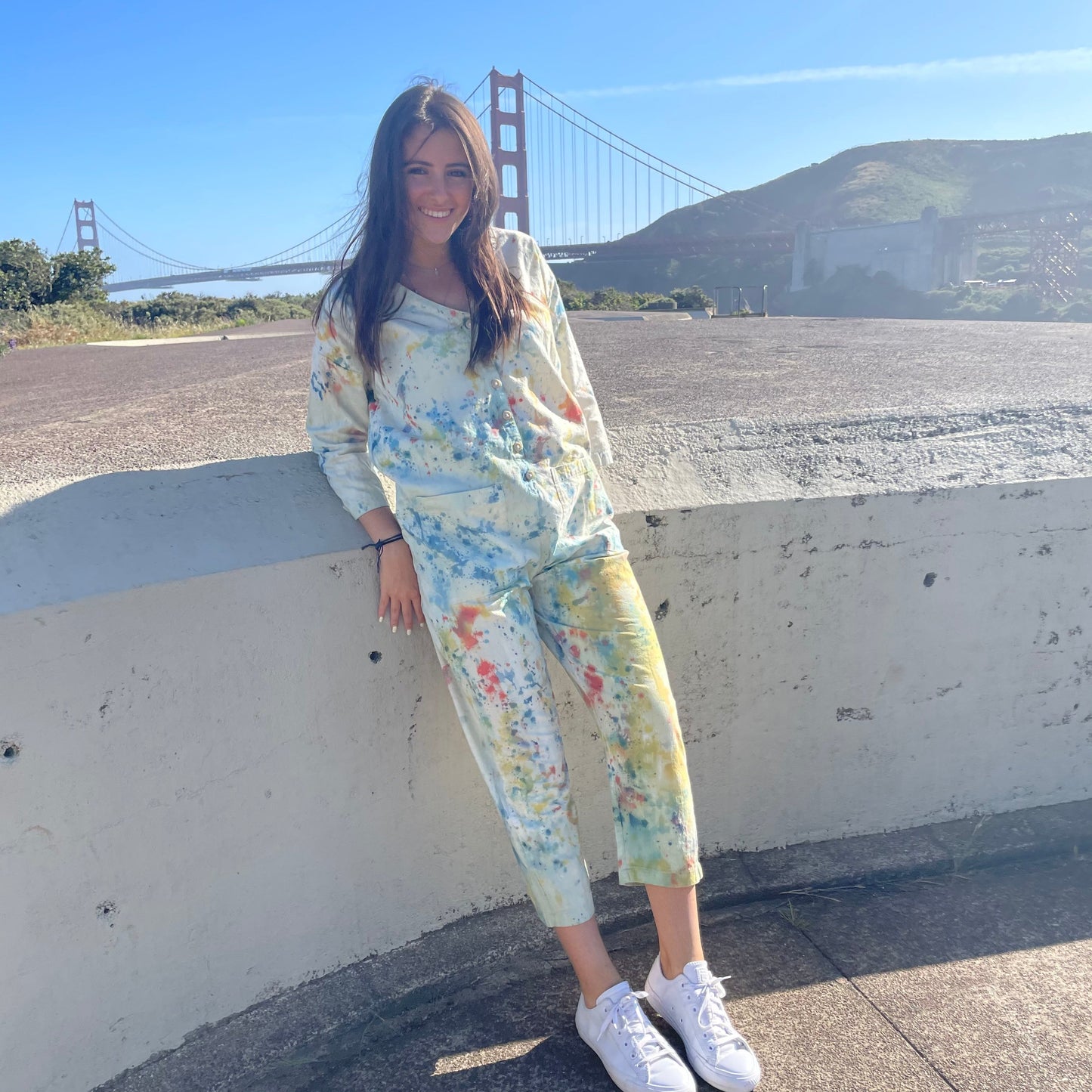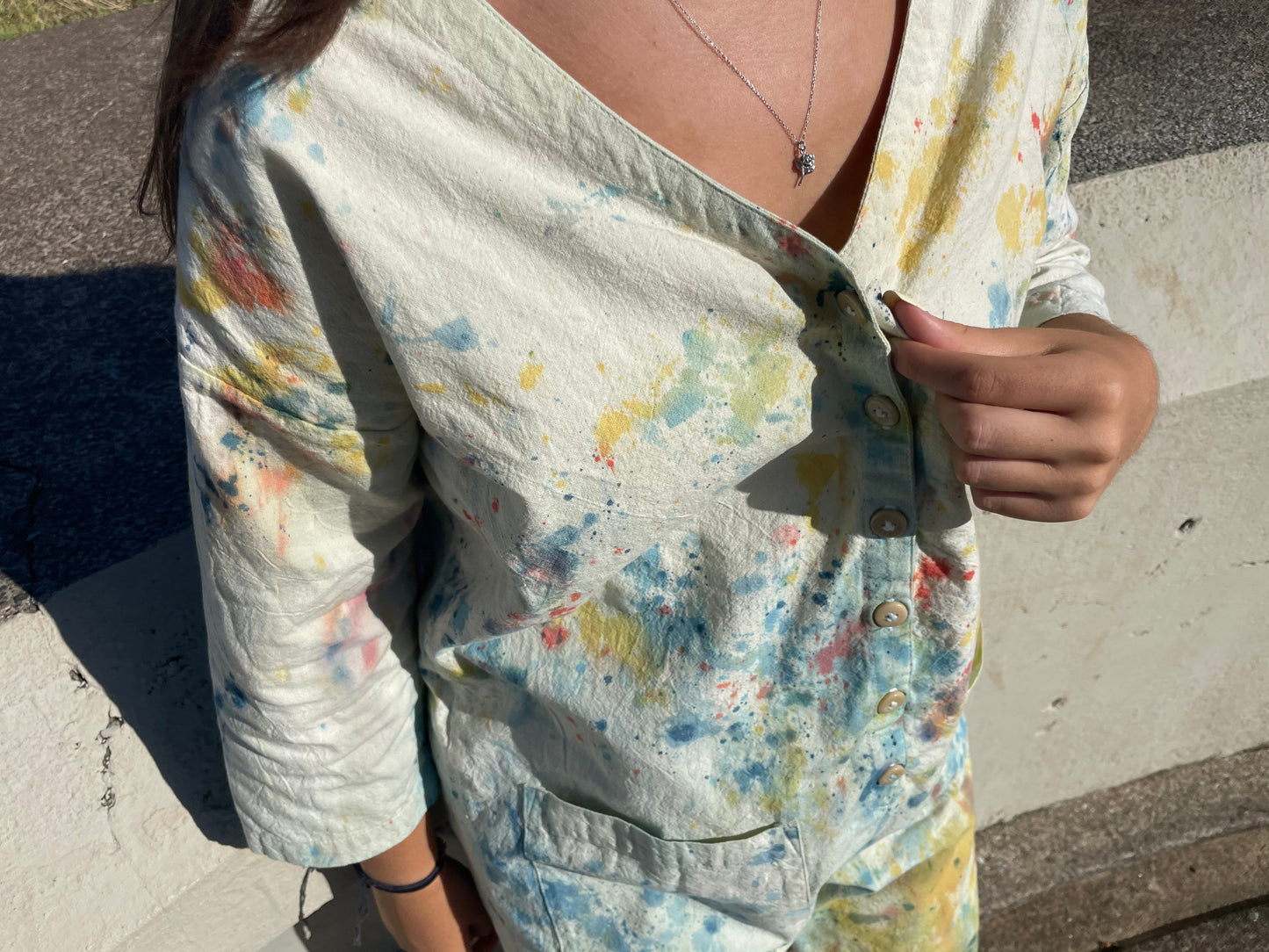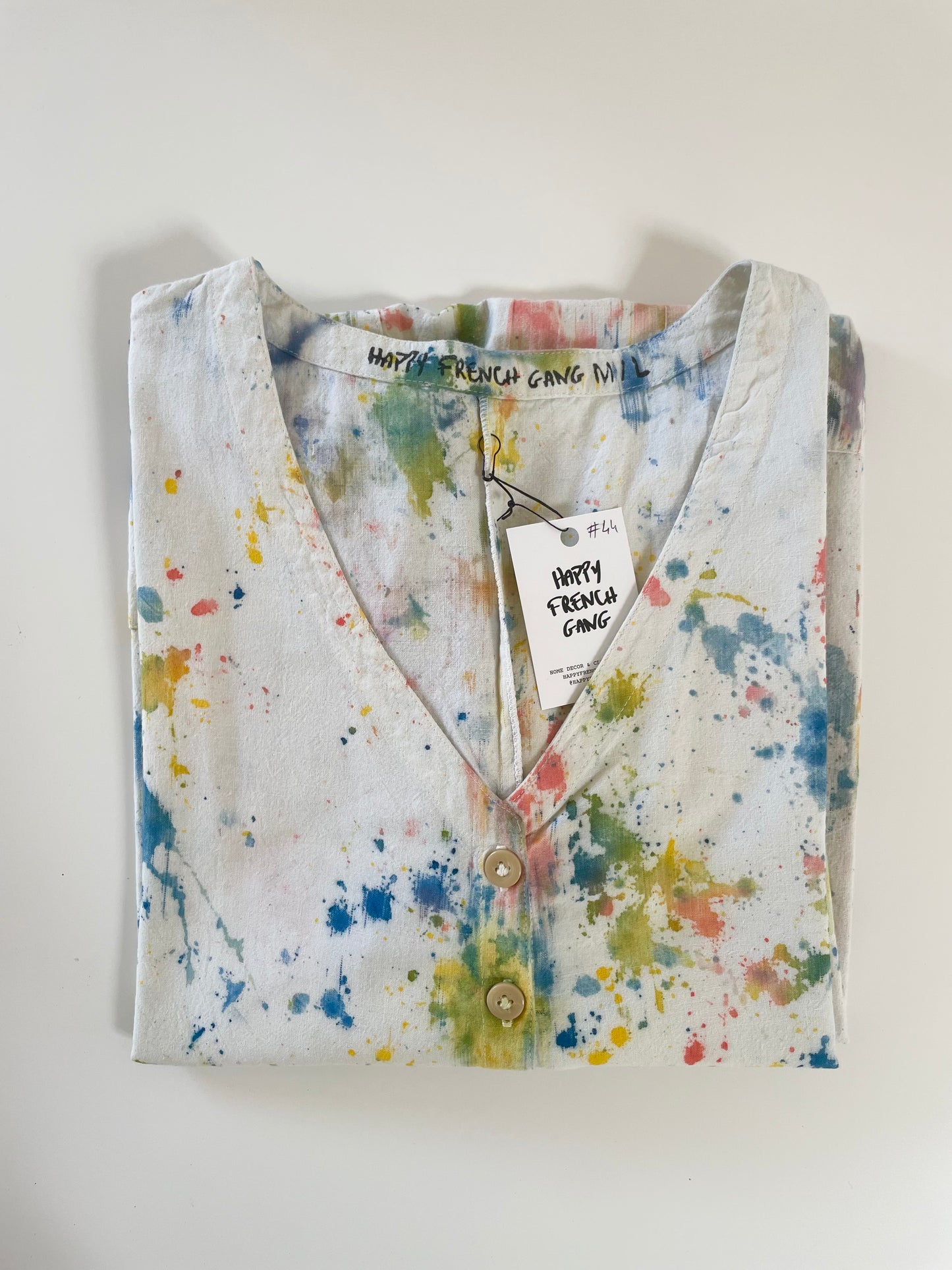 This tie-dye collection has been created with the only goal to reduce our waste at Happy French Gang. We sometimes have plain color pieces that have small color imperfection. We love them but it’s hard to sell them without seeing in person. That is why I decided to transform them completely and make the most colorful and happy pieces.