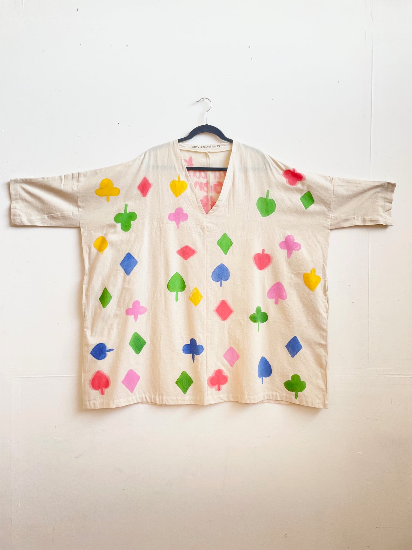 This hand-painted collection has been created with the only goal to reduce our waste at Happy French Gang. We sometimes have plain color pieces that have small color imperfection. We love them but it’s hard to sell them without seeing in person. That is why I decided to transform them completely and make the most colorful and happy pieces.