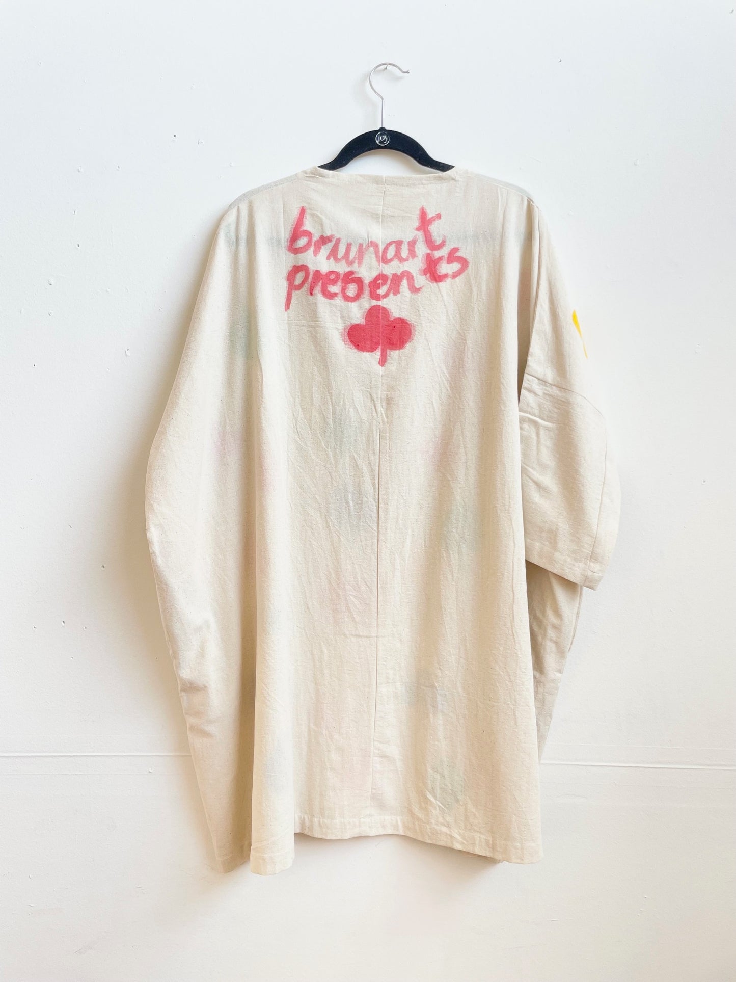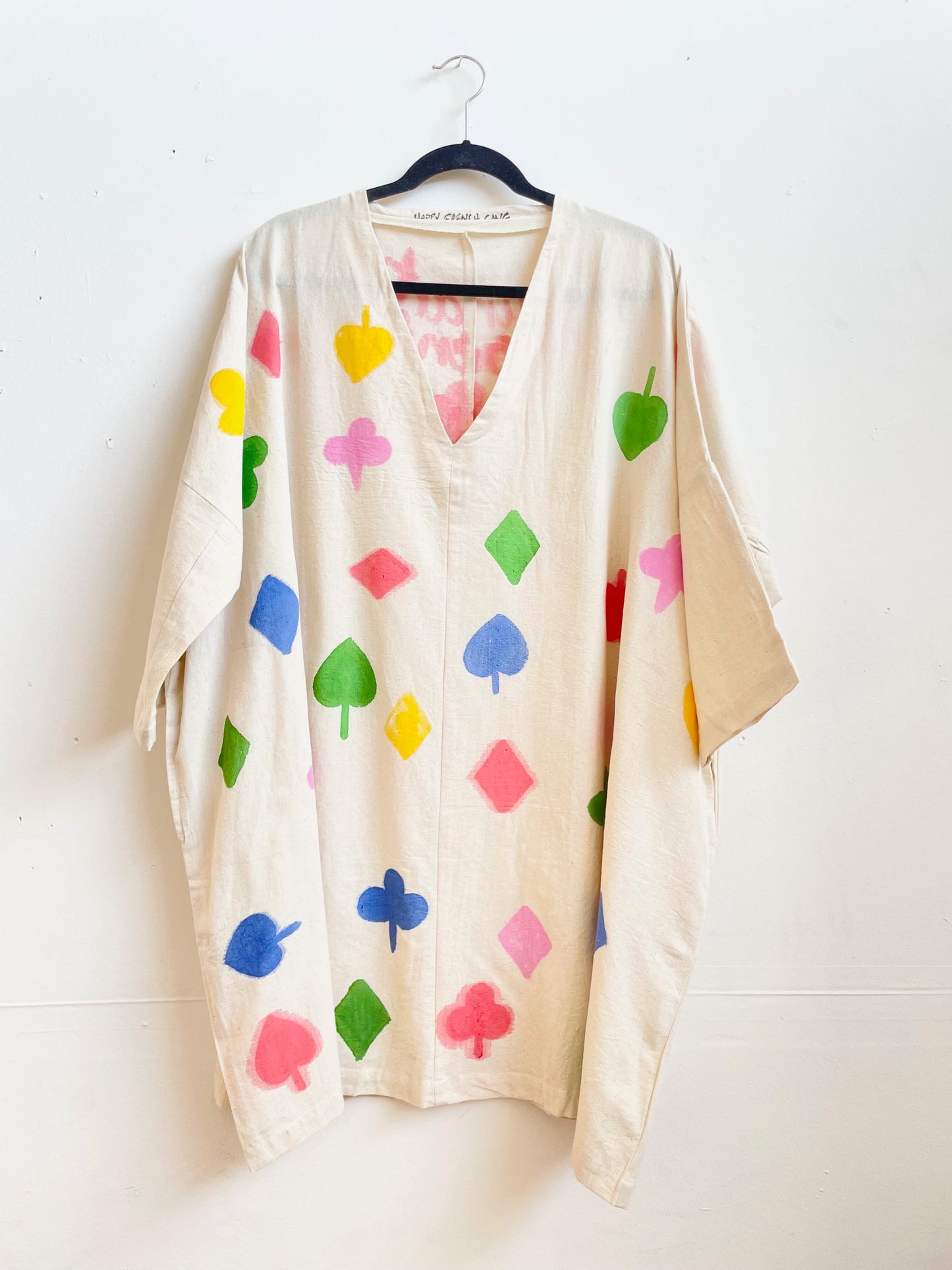 One of a kind hand-painted dress made from homespun, handwoven 100% cotton. Light weight fabric. 2 pockets in front, one behind.
