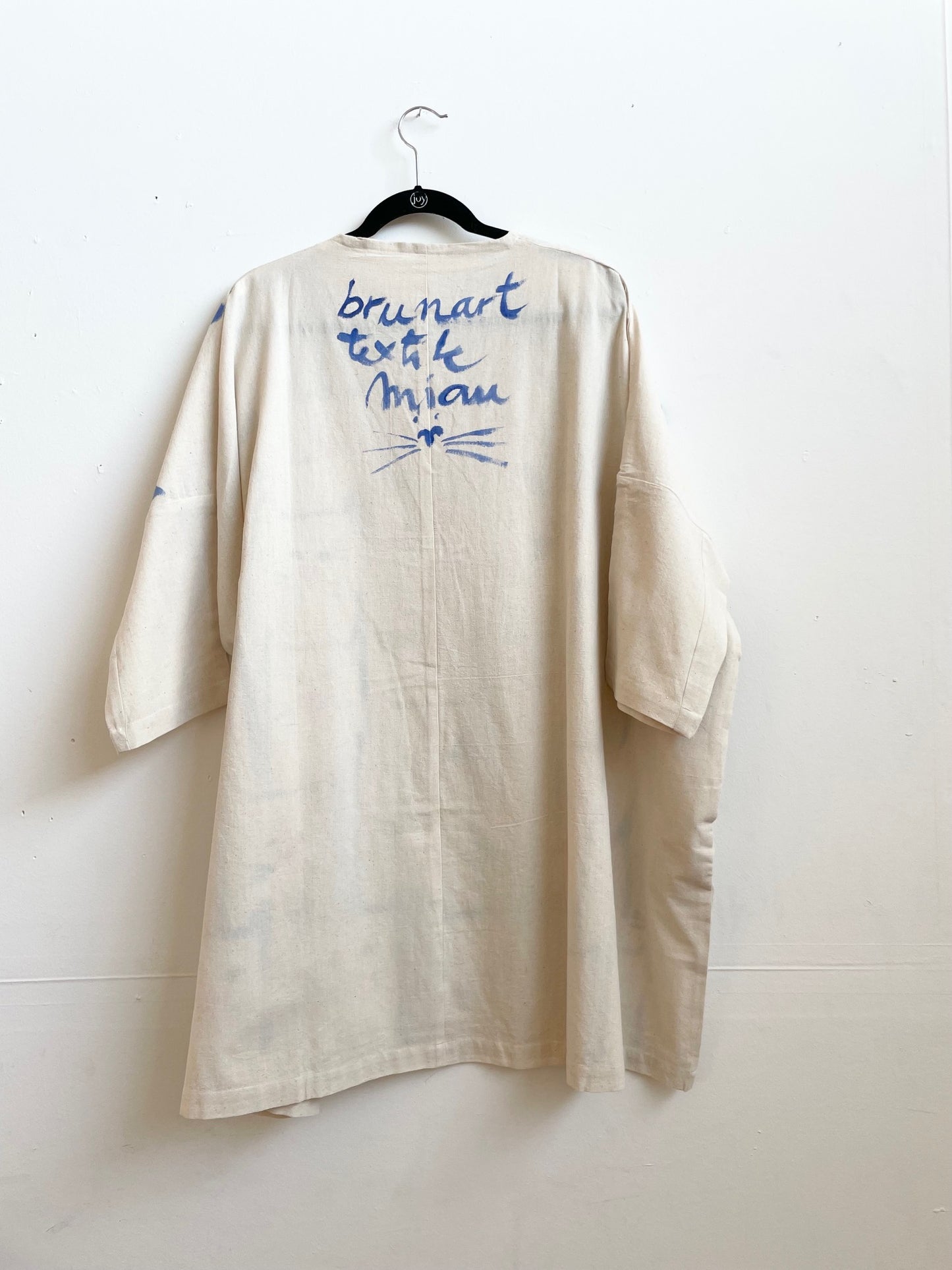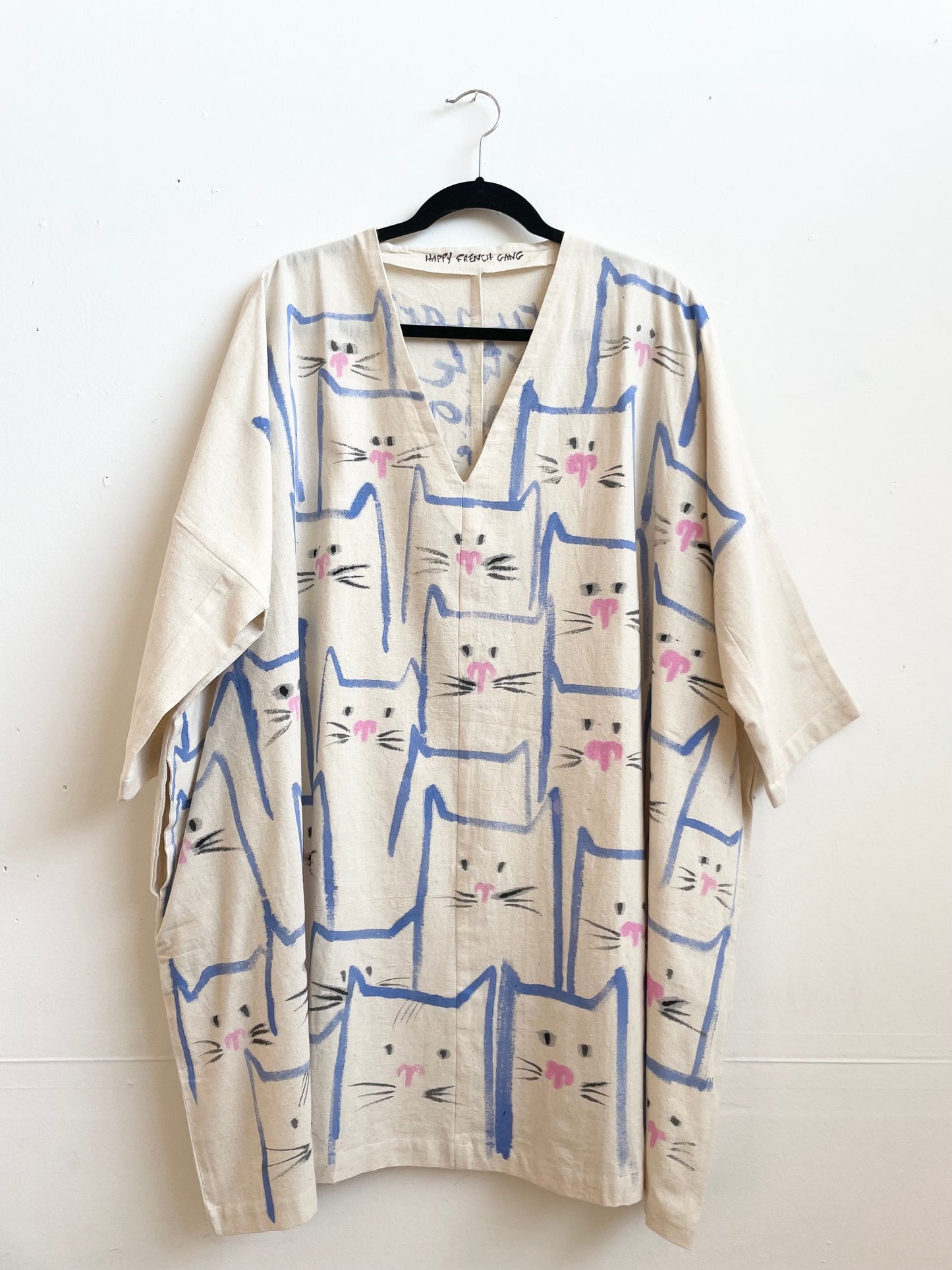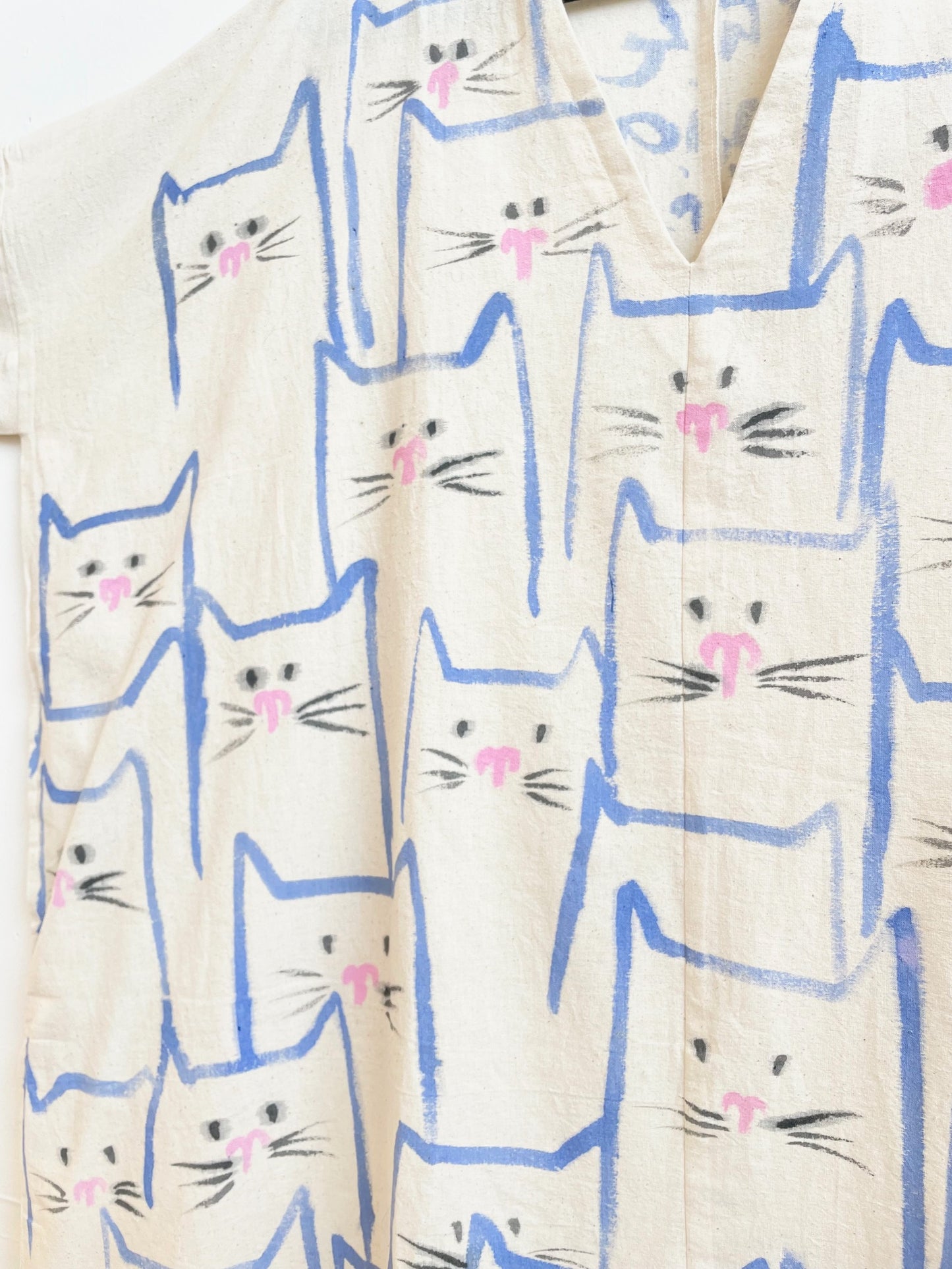 One of a kind hand-painted dress made from homespun, handwoven 100% cotton. Light weight fabric. 2 pockets in front, one behind.