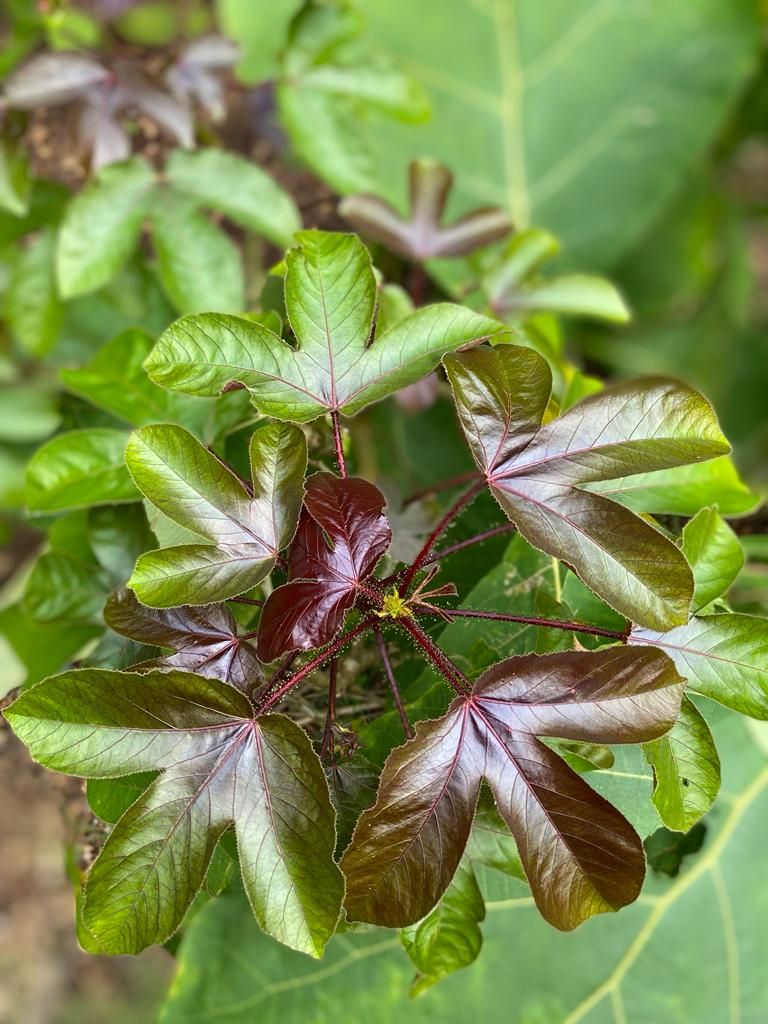 For dyeing this scarf we used secang barks mixes with iron water. The plants for the eco print are the following: 🍃Mimba leaf. 🌿Cotton leaf. 🍁Castor leaf. 🍂Lanang leaf. 🌱Tabebuia leaf.