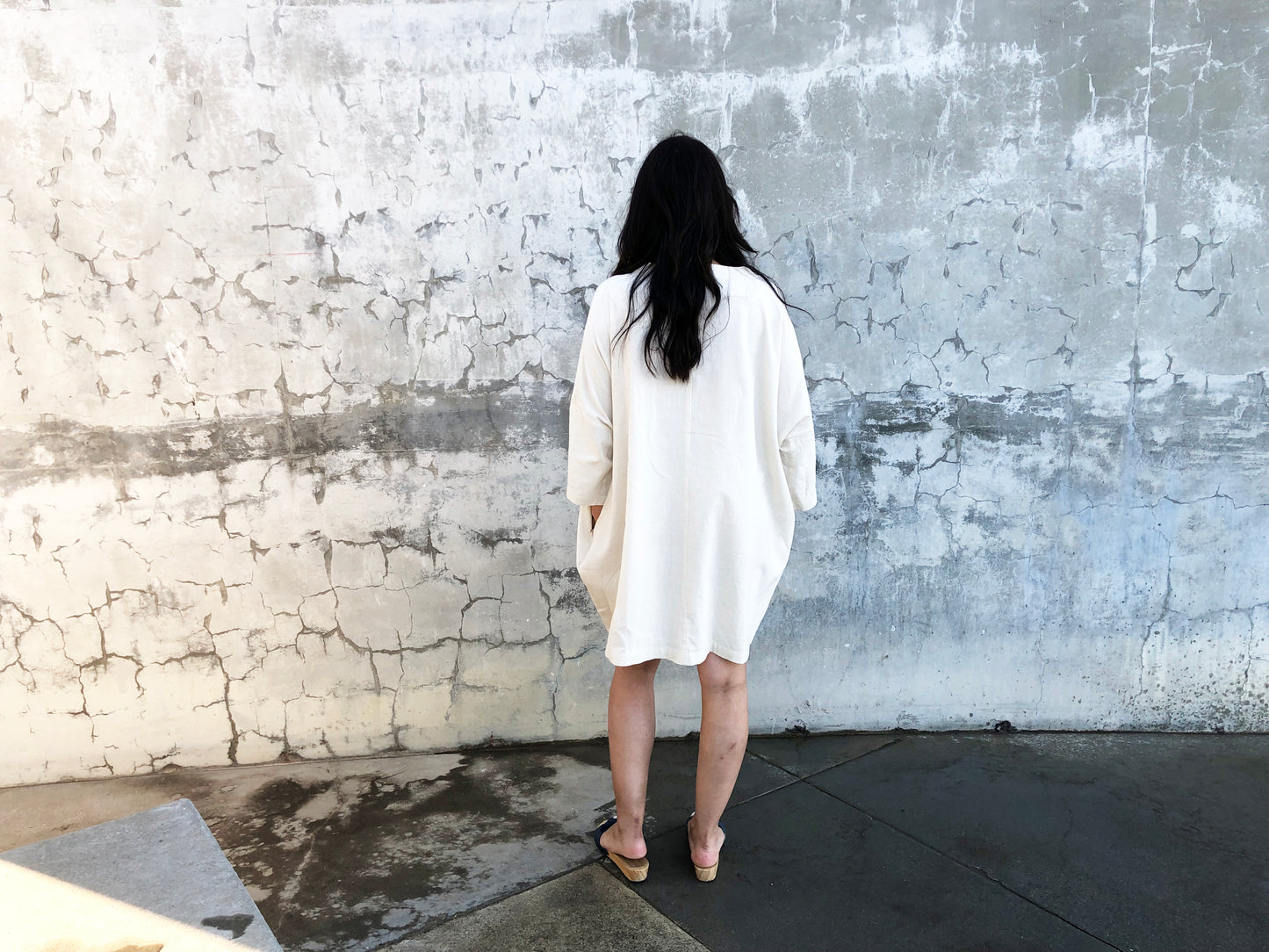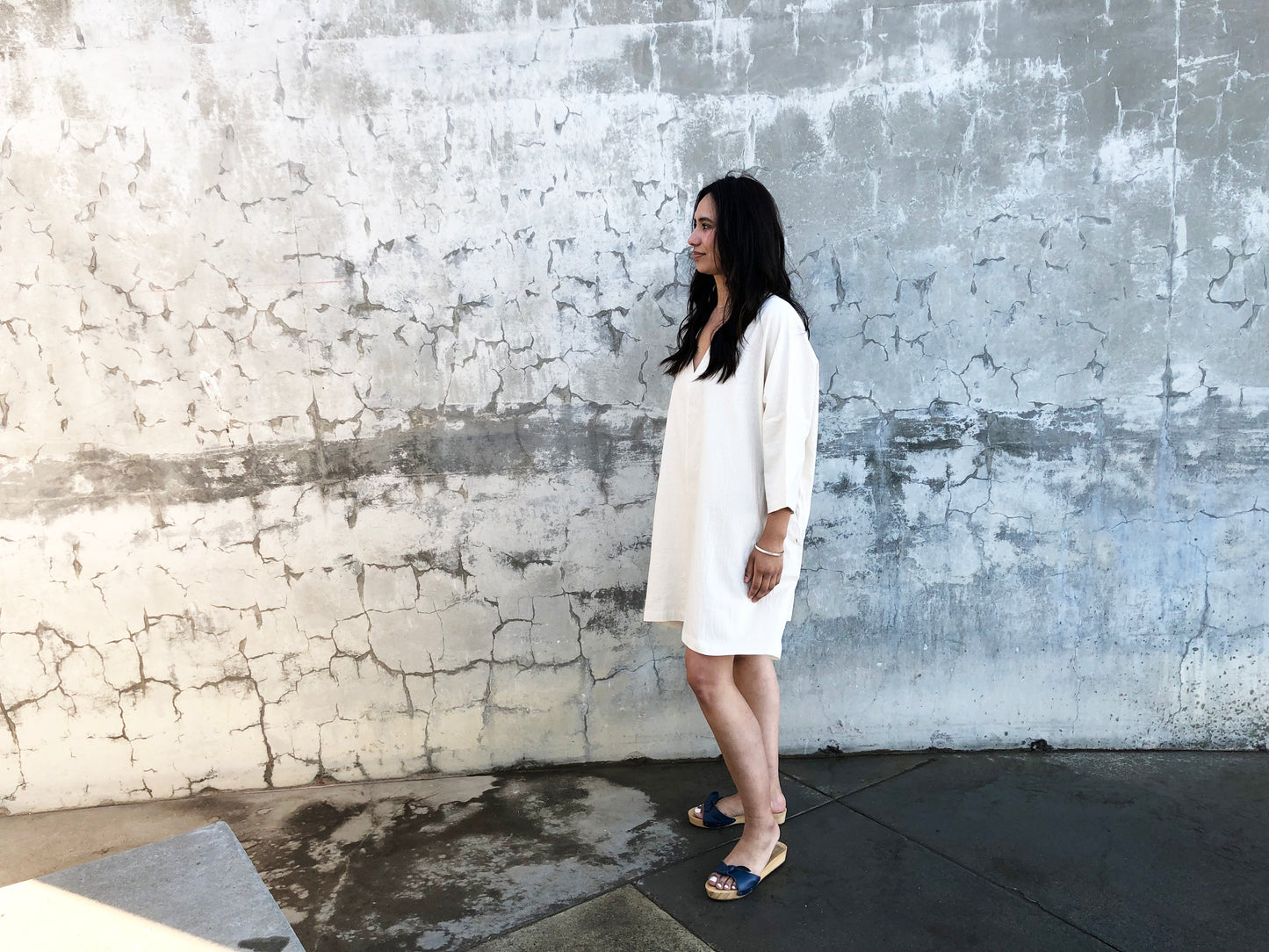 How Sandra wears it: " Since it's often windy in San Francisco I wear it more often as a tunic with a jean under it. But when it's sunny this dress is so easy. Also for the vacations at the beach it's clearly my go to dress as I can also change so easily under it! beach pro tip!"